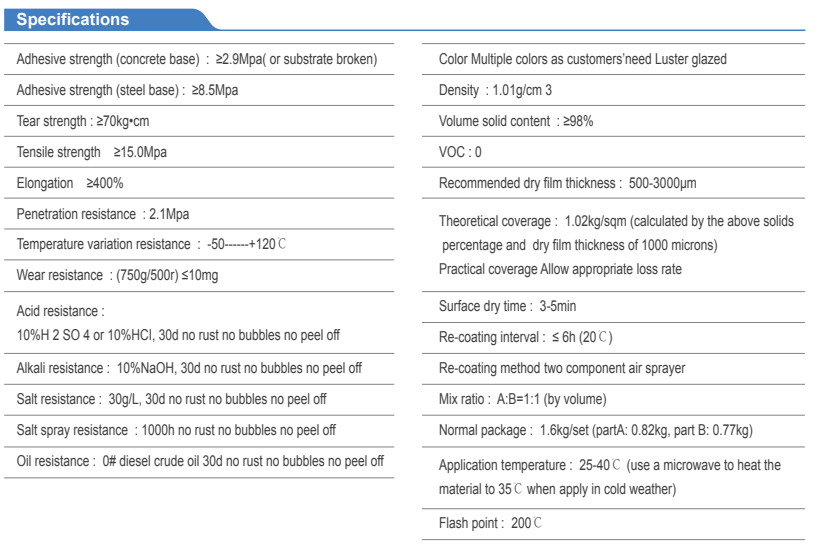 The coating is flexible, compact and seamless, with excellent comprehensive physical properties, no powdery,